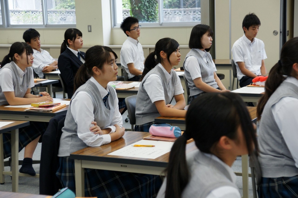 笑いがあり、また、生徒へも質問を受けるシンキングタイムが設けられ、各学年から