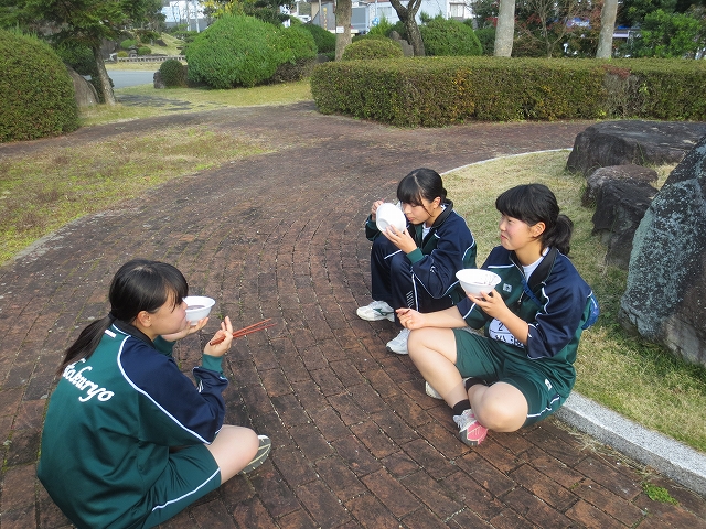 昨日の収穫感謝祭で、北稜生全員で豚汁を食べ、
