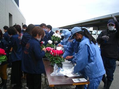 市役所のご厚意により、シクラメンの販売実習をさせていただきました。