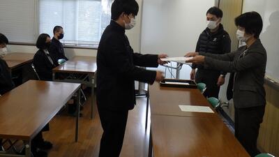 23日、会議室で学校農業クラブの新役員任命式が行われました。