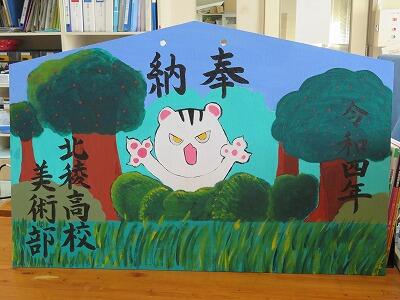 美術部の1年生が描いた絵馬を、神社に奉納してきました。