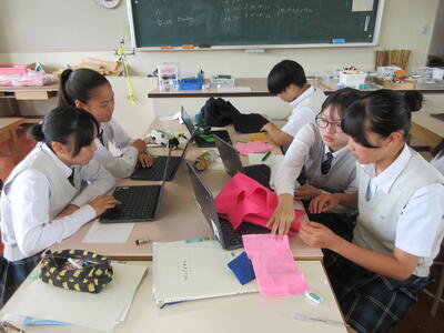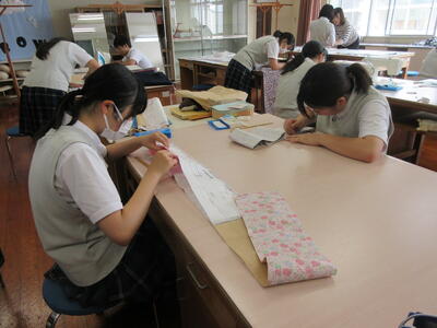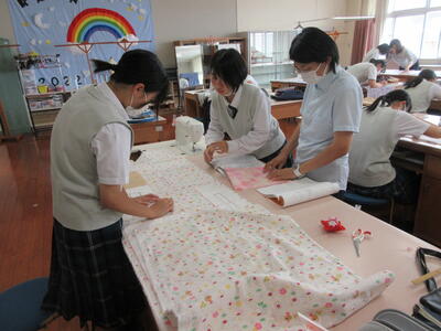 家政科2年生「ファッション造形基礎」では、じんべいの製作に取り組んでいます。