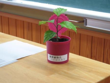 2-2の生徒たちが、授業の一環で事務室に花苗の販売にきました。