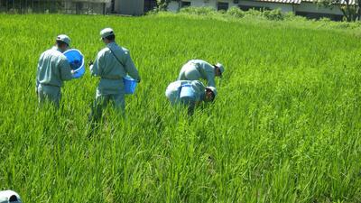 1年生は前回途中で終わっていた水田の除草を最後まで取り終えました。