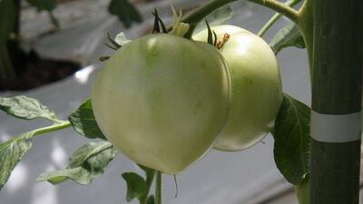 トマトは緑が薄くなって白くなってきました。