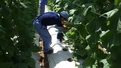 野菜専攻ではメロンの玉つりを行いました。