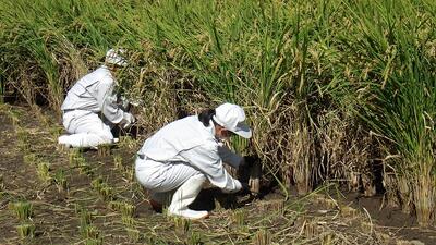 農業と環境の授業で栽培しているイネが、台風14号の影響で部分的に倒伏しました。