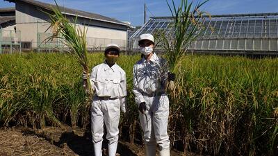 6月に田植えをしたイネが台風の被害を少し受けましたが、無事に稲刈りをすることができました。