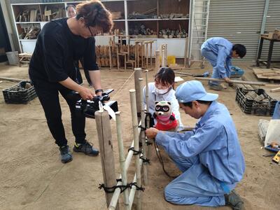本校生徒:「和風庭園によくある竹垣を作っています。