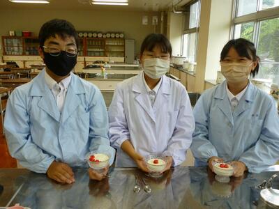 3年生4名の家庭クラブ役員は最後の行事を務め、最後の挨拶を終えました。お疲れさまでした。