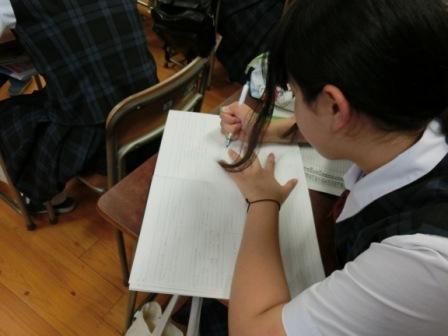 二年家政科学科課題研究中間発表会 投稿日時 : 2015/06/24 HRBT2016 カテゴリ:学校生活 「課題研究」の授業では自分たちの進路について調べ学習を行っています。 今日は今まで調べた進路について中間報告会を行いました。進学希望者は希望する学校についてや資格について、就職希望者は自分のやってみたい職業についてクラスで発表を行いました。みんな真剣に発表会へ参加し、自分たちの進路を少しでも明確にするヒントを見つけてくれるといいです。真剣に取り組む生徒発表する生徒、それを真剣に聞くクラスメイトB03