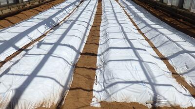 当番実習で、メロン温室のマルチングをしました