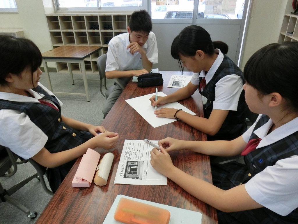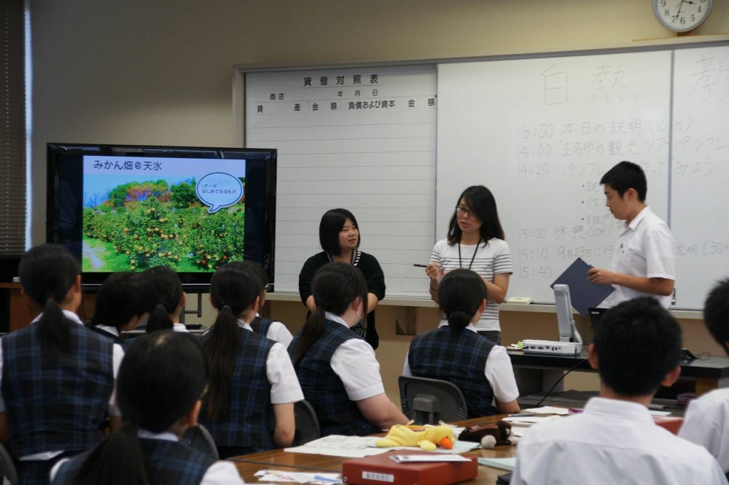 大学生が作った玉名に関する難問にも挑戦しました! そして 午後からはワークショップ。今度は大学生のリードで発表まで行いました。 |