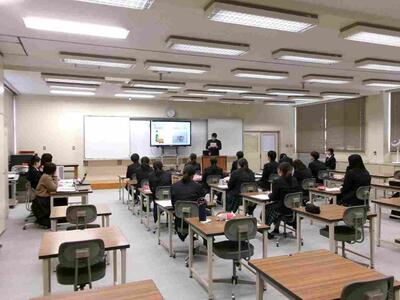 その後、2年生が課題研究で取り組んだ「長期インターンシップ」についての発表を行いました。