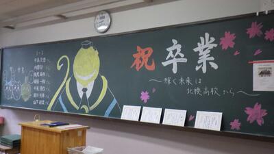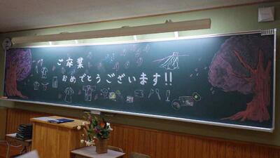 登校すると1年間過ごした教室の黒板に、素晴らしいお祝いを発見しました。
