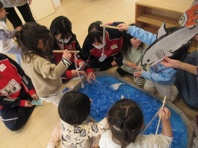 保育実習に向けてワニ叩きやお魚釣りなどのおもちゃを手作りし、この日をとても楽しみにしていました。