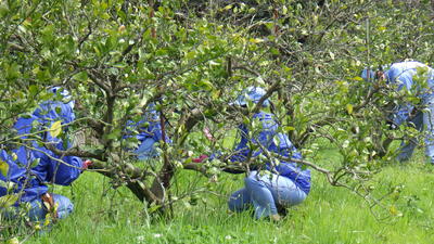 2年の果樹専攻では肥のあけぼのの間伐と剪定をしました。