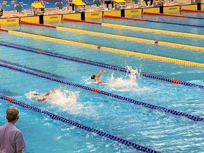 水泳部の年間目標は、大会での自己ベスト更新ですが、
