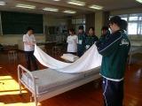 新聞紙から作成するペーパーバックの作り方や、ベッドメイキングの仕方、体位変換、