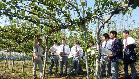 梨農家で、最新の梨の木の仕立て方を学ぶ