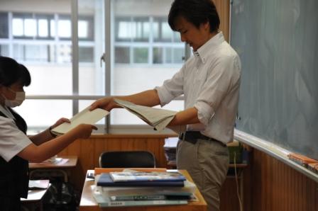 中間考査の答案続々返却!! 投稿日時 : 2014/05/26 HRBT2016 カテゴリ:学校生活 先週、今年度初めてとなる定期考査(中間考査)が実施されました。週明けの本日、各クラスで答案の返却が行われていたようです。笑顔あり落胆あり人それぞれのようです。この写真は、新設のビジネスマネジメント科1年生の教室です。英語の授業でしたが、かなり高いクラス平均点だったようです。C01