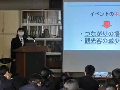 報告会には玉名商工会からも来校してくださり、とても緊張感のあるものとなりました