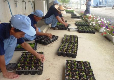 放課後も農場管理で頑張っています。 投稿日時 : 2014/09/03 HRBT2016 造園科では、校内の樹木の剪定をしていました。3年生になると高所の作業でも手際よくできていました。園芸科学科では、2年生が草花の鉢上げをしていました。G01