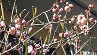 武道場の周りでは椿が終わりを迎え、梅の蕾が開き初めました。