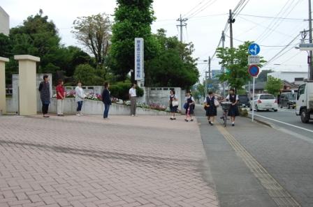北稜高校保護者・職員合同一斉登校指導 投稿日時 : 2015/06/24 HRBT2016 カテゴリ:学校生活 本日は朝から、保護者と職員一緒に生徒の登校指導を行いました。本校生徒の住んでいる場所は広範囲で各箇所に保護者と職員が立ち、挨拶の指導や交通ルール等の指導を行いました。登校してくる生徒は交通ルールを守り、元気な声で挨拶をします。その姿を見た保護者の方々は、安心されていた様子でした。正門前おはようございます。B01