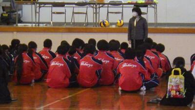 男子はグラウンドでサッカー、女子は体育館でバレーボールを楽しみました。