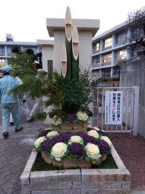 昨日の放課後に造園同好会で本校の正門に門松を制作しました。門松とは、お正月に年神様が来られる目印とし、年神様が来られる事で災いがなく、幸福がくるとされています。