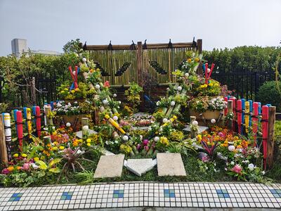 福岡県のPaypayドームにて庭作りが行われました。3m×2.6mの区画にデザインで入選した19組のチームが参加し、各チームが「PS!ピース」のガーデンテーマに沿って入選した庭の製作を行いました。本校からは、造園科の3年生が参加し、生徒・職員一丸となって施工を行いました。本校のテーマは、「PS!ピース」勝利のVサイン!~みんなの想いをのせて~のテーマに本校で学んだ技術を活かして庭園を完成させました。今回の庭には、熊本の地域からホークスに向けてバットやボールにメッセージを書いていただきみんなの想いを載せた竹垣や本校で栽培した植物たちを色鮮やかに植栽し、オリジナルの庭園を製作しました。思いの詰まった庭園となっていますので、是非福岡に行かれた際は、足を運んで見ていただけると嬉しいです。