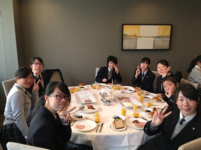 修学旅行最終日① 投稿日時 : 2017/12/19 学校サイト管理者 おはようございます。修学旅行最終日の朝です。東京は本日も快晴。天気にも恵まれた修学旅行でした。最終日の朝食前の生徒達です。そして、修学旅行最後の朝食。この後、8時30分にホテルを出発、東京を散策し熊本へ帰ります。