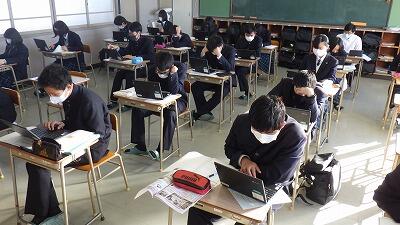 タブレットを使い始めて1ヶ月が過ぎ、授業等でも使用して、朝の健康観察もみんなスムーズにできるようになりました。その後のわずかな時間でも無駄にしないように、テスト勉強に取り組んでいます。