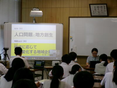 田上さんは、玉名市の人口減少が、私たちの働き方や生活にどう影響するのか、お話していただきました。