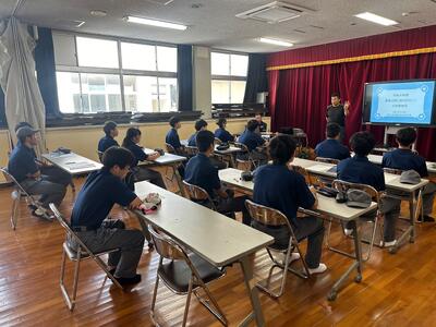 今回の授業では、キッチンカーで出店していただく「オリーブキッチン」から来校していただき、講話をしていただきました。