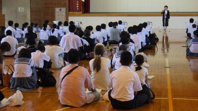 生徒たちは、興味津々の眼差しで模擬検査を見ており、とても記憶に残る講話になったことと思います。