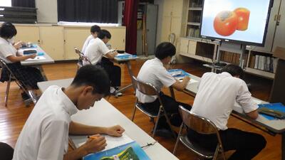 3年生は2年次に手書きによる立面図や透視図を行い、製図の基礎を学びました。