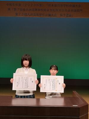 令和5年(2023年度)9月28日(木)、八代市の鏡文化センターで標記大会が開催されました。本校からは園芸科学科3年田中弓香さんと、ビジネスマネジメント科2年の東歩さんの2名が参加しました。2人とも放課後遅くまで練習し、大会当日は素晴らしい発表をしてくれました。結果は下記のとおりです。