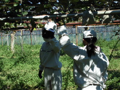 果樹専攻では収穫が終わったブドウ温室の枯れ葉の片付けをしました。