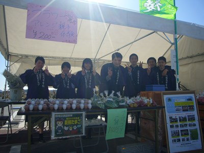 キラリかがやけ玉名フェスタ(玉名市産業祭2018) 投稿日時 : 2018/03/12 HRBT2016 3月10日(土)に玉名市役所前で行われた「キラリかがやけ玉名フェスタ(玉名市産業祭2018)」に参加しました。農業クラブ役員が、農産物販売やフラワーアレンジ体験、学校紹介パネルの展示などを行い、北稜高校のPRを行いました。農産物は開始早々完売するものもありました。フラワーアレンジは生徒が先生役となって希望される方にアレンジの方法を教えていました。天気にも恵まれ、充実した産業祭となりました。