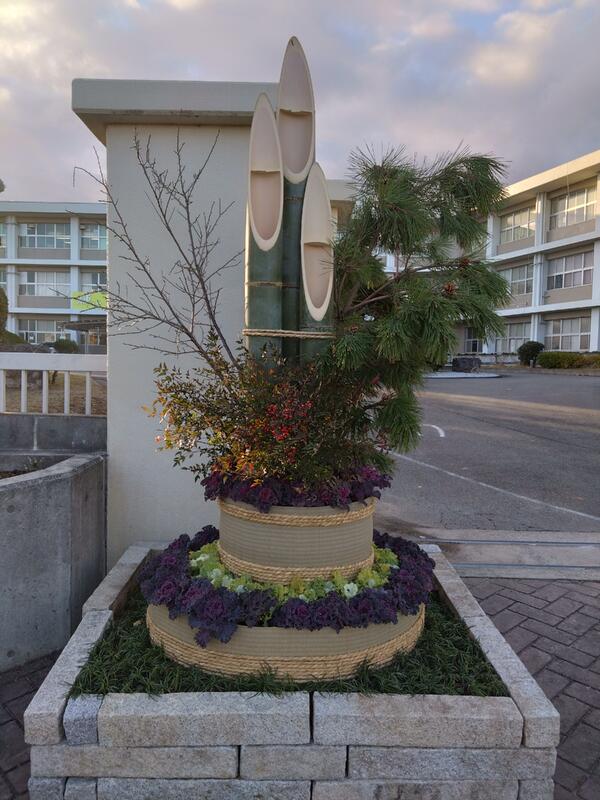 今年ももうすぐ終わります。北稜高校では、造園科の生徒たちが、毎年正門に大きな門松を作成しています。大きな竹を慎重に削っていき、配置を考え植栽していき、飾りつけを丁寧におこなってきました。正門前を通られる際はぜひご覧ください。