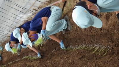 ネギの定植 ~園芸科学科2年実習 投稿日時 : 2021/06/06 学校サイト管理者 3月に播種した長ネギの苗を定植しました! 深く溝を掘って、壁に並べて覆土しました。 これから土寄せをしながら、11月の収穫で白い部分がどのくらいの長さになるか楽しみです。