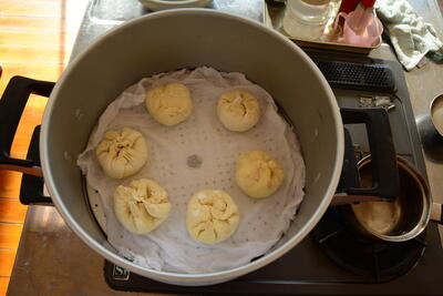 今回は「包子饅頭(パオズマントウ)、拌三絲(バンサンスー)、粟米湯(スーミータン)」を作りました。