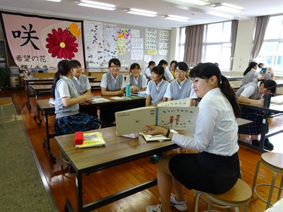 絵本の読み聞かせ実習 投稿日時 : 2017/06/19 HRBT2016 3年家政科学科の「子ども文化」の授業で、絵本の読み聞かせ実習を行いました。事前にたくさんの絵本の中から、内容が分かりやすく、子どもが楽しめるもの、という視点で選び、練習をしました。グループ内の発表では、セリフを読むのがとても上手な人もおり、笑いがたくさん聞こえてきました。お互いに声の大きさや読むスピードなど意見交換も行いました。今回は教育実習の先生も一緒に参加していただき、本を読んでくださいました。みんな、久しぶりに本を読んでもらう体験をして、とても楽しかったようです。これから子どもに本を読む機会があったら生かしていってほしいと思います。J01