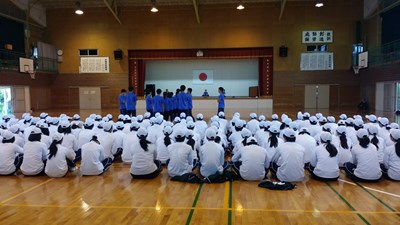 体育大会練習 投稿日時 : 2017/05/12 HRBT2016 本日は、午前中から体育大会の予行を行っていましたが、雨が降り出したため室内に場所を移して練習を行っています。しかし、北稜生は雨にも負けず体育大会本番に向けて頑張っています。「青団」応援練習の様子「黄団」応援練習の様子