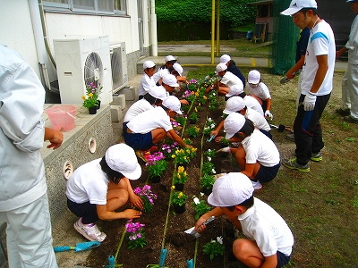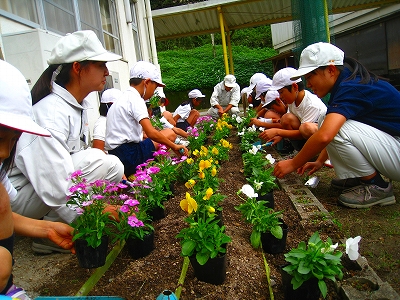 小学校へ花壇づくり 投稿日時 : 2016/10/31 HRBT2016 晴天に恵まれた先週、草花専攻生7名で石貫小学校へ花壇を作りにいきました。小学生と楽しく交流をしながら380鉢の花苗を植え付けました。植え付け後は「花壇がきれいになってよかった」「花の名前を知ることができた」などの感想をいただきました。ありがとうございました。 F04
