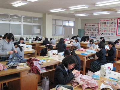 甚平がもうすぐ完成です! 投稿日時 : 2018/03/06 HRBT2016 今日の2,3限目は1年家政科学科の生徒が被服室で甚平製作を行っていました。あとはひもを作り、本ぐけや耳ぐけで始末をすると完成です。とても苦労して頑張って作った作品です。来週の着装会が楽しみですね。