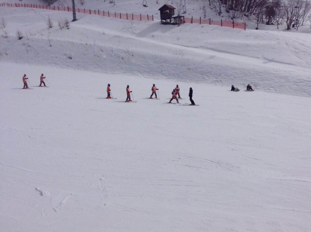 修学旅行日記2日目⑤ 投稿日時 : 2016/02/17 学校サイト管理者 午前中のスキースノボー研修が終わりました。最初は転んでばかりでしたが少しずつうまくなっているようです。 早い班は、午前の最後にはレッスンゲレンデのリフトに乗っていましたよ。写真はリフトからです。今日のお昼ごはんはミートソーススパゲティでした! たくさん食べて午後も頑張ります。