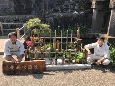 計画から施行まで生徒達が考えて造っています。しょうぶの花を見にいかれる際は是非、